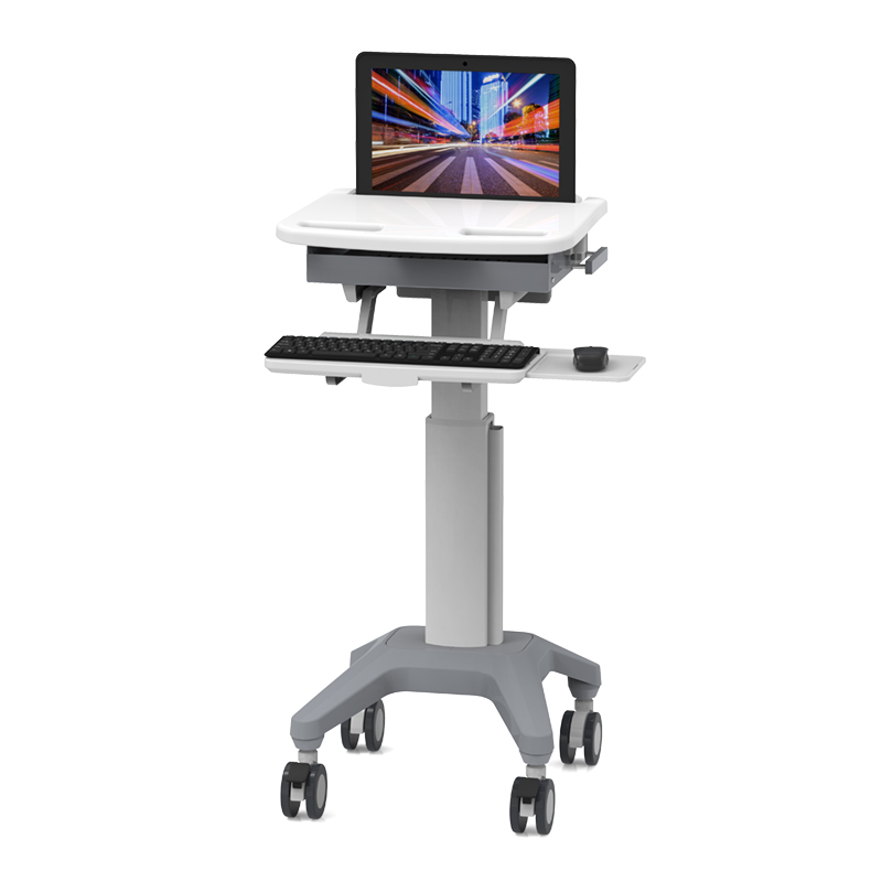 Our latest medical laptop trolley offers several ergonomic enhancements to ensure optimal comfort and productivity. The adjustable height feature has been improved, allowing for a greater range of motion to accommodate both sitting and standing positions. This flexibility helps maintain better posture and reduces strain, making it easier to switch between different working heights.